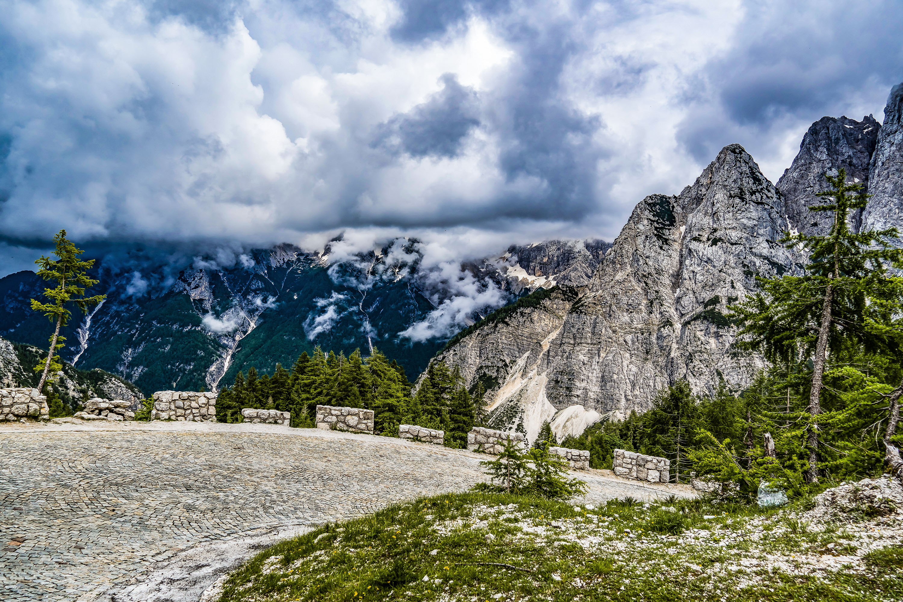 SLOVENIA Vrsic Pass Stoneart Vrsic Pass Road Mountain Approach Waterflow Limestone Cave near Škocjan Collapsed Lime Stone Cave Škocjan Cave Tour Camping Views Waterfall Back to Gallery