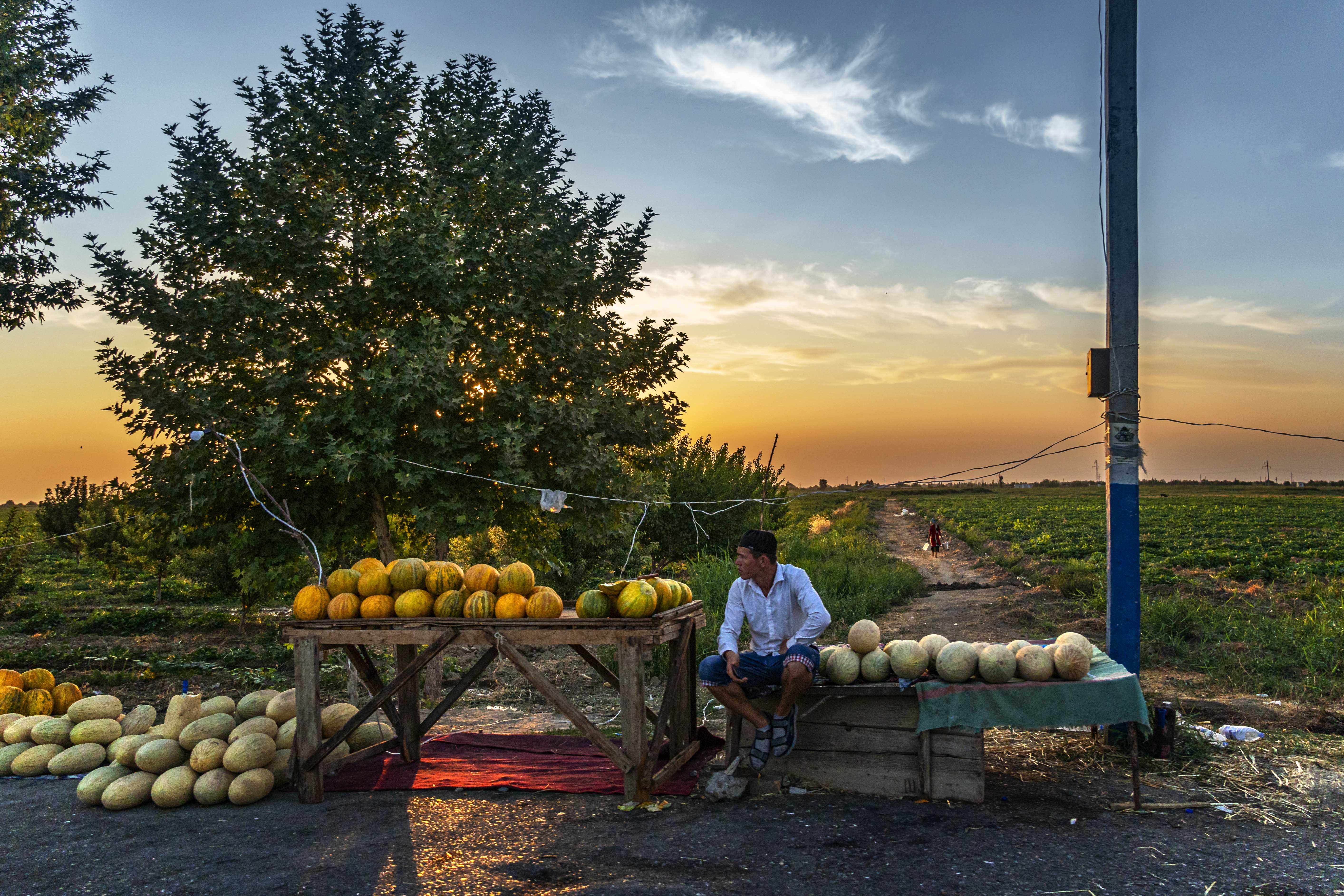 UZBEKISTAN A man selling melons along the way to Samarkand A classroom at Koʻkaldosh Madrasa in Taschkent Amir Timur Statue at the central square in Taschkent Subway in Taschkent Uzbek country life « ‹ von 4 › »